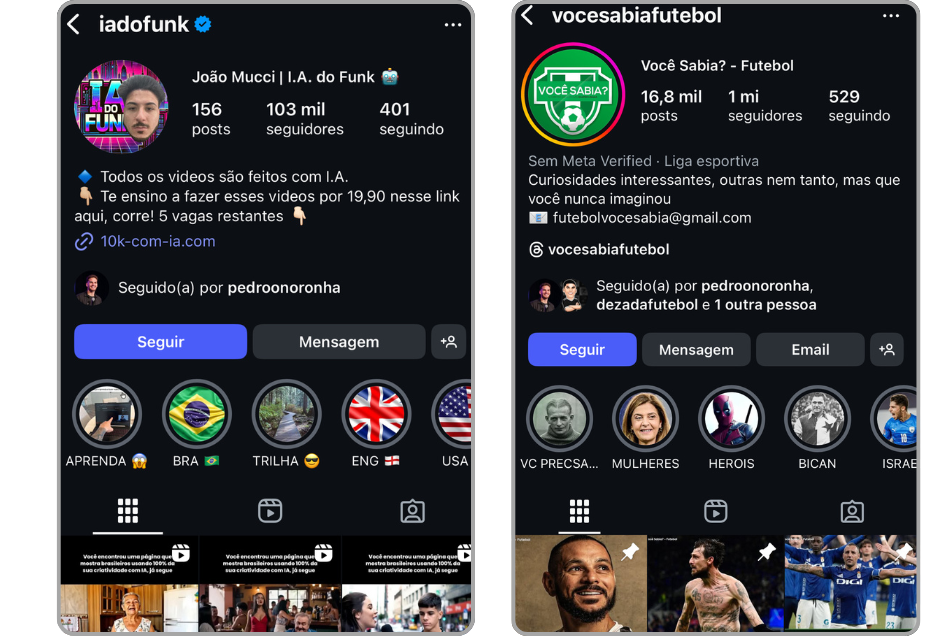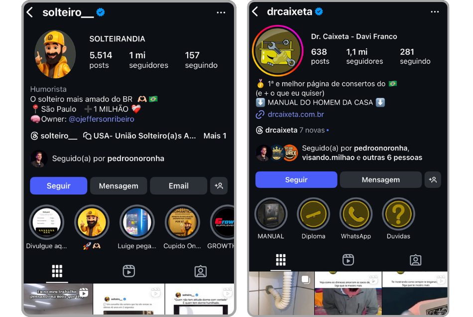 perfis no Instagram.