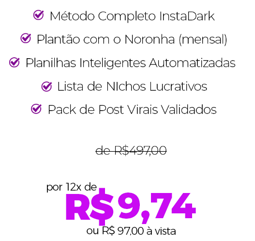 Se dentro de 7 dias após a sua inscrição, você sentir que o InstaDark não atendeu as suas expectativas ou não é para você, basta enviar um e-mail para Likeland.br@gmail.com e nós devolveremos 100% do valor que você investiu. Sem burocracias, nem explicações!